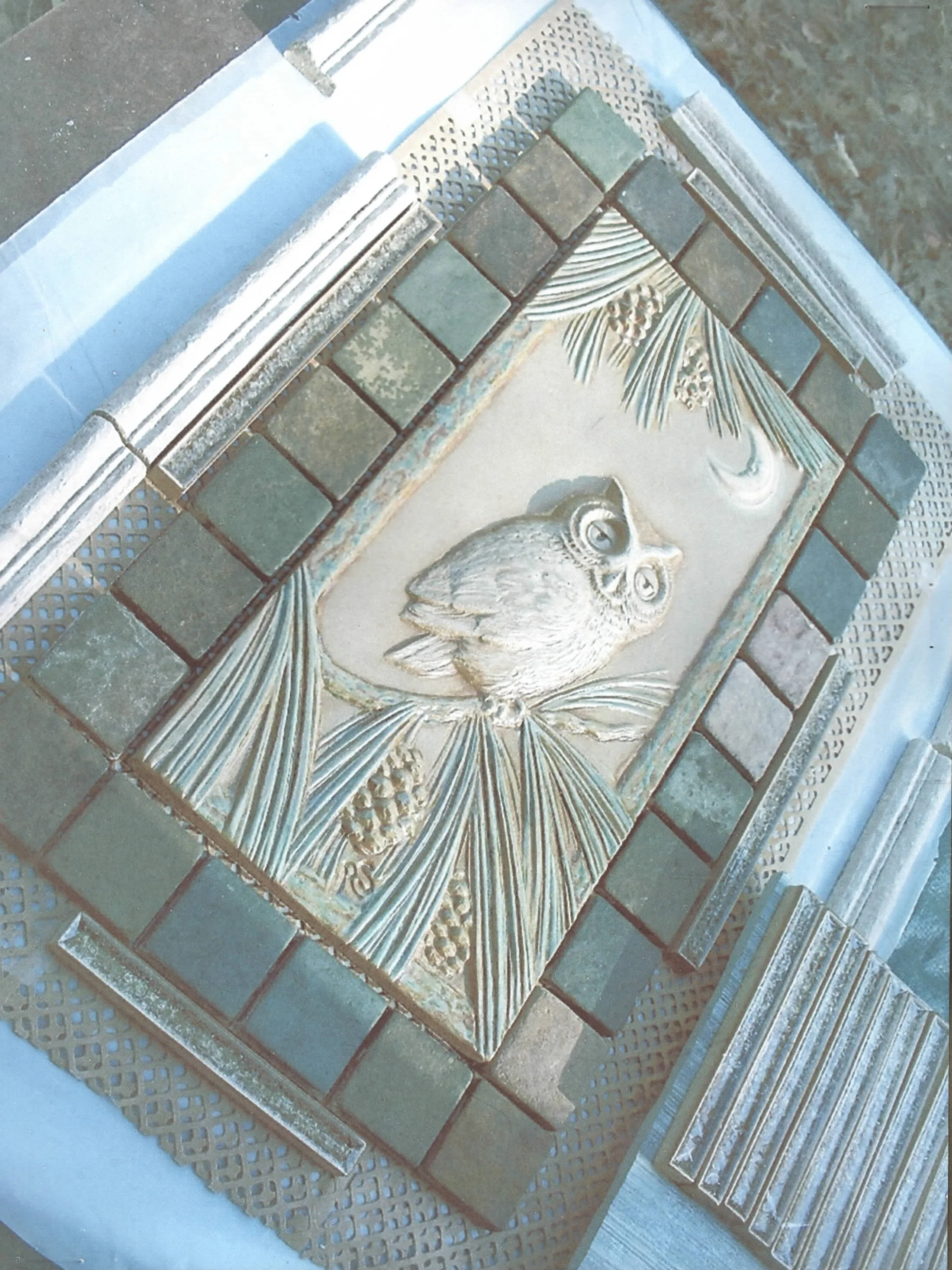 Ceramic OwlMedia: Hand Carved Ceramic ReliefCeramic owl wall plaque for custom fireplace installation